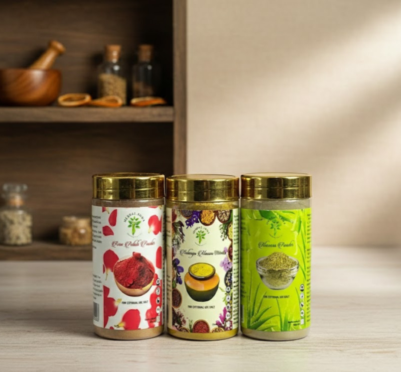 Skin Brightening Combo (260g) (Rose Petals – Kasturi Manjal – Multani Mitti)