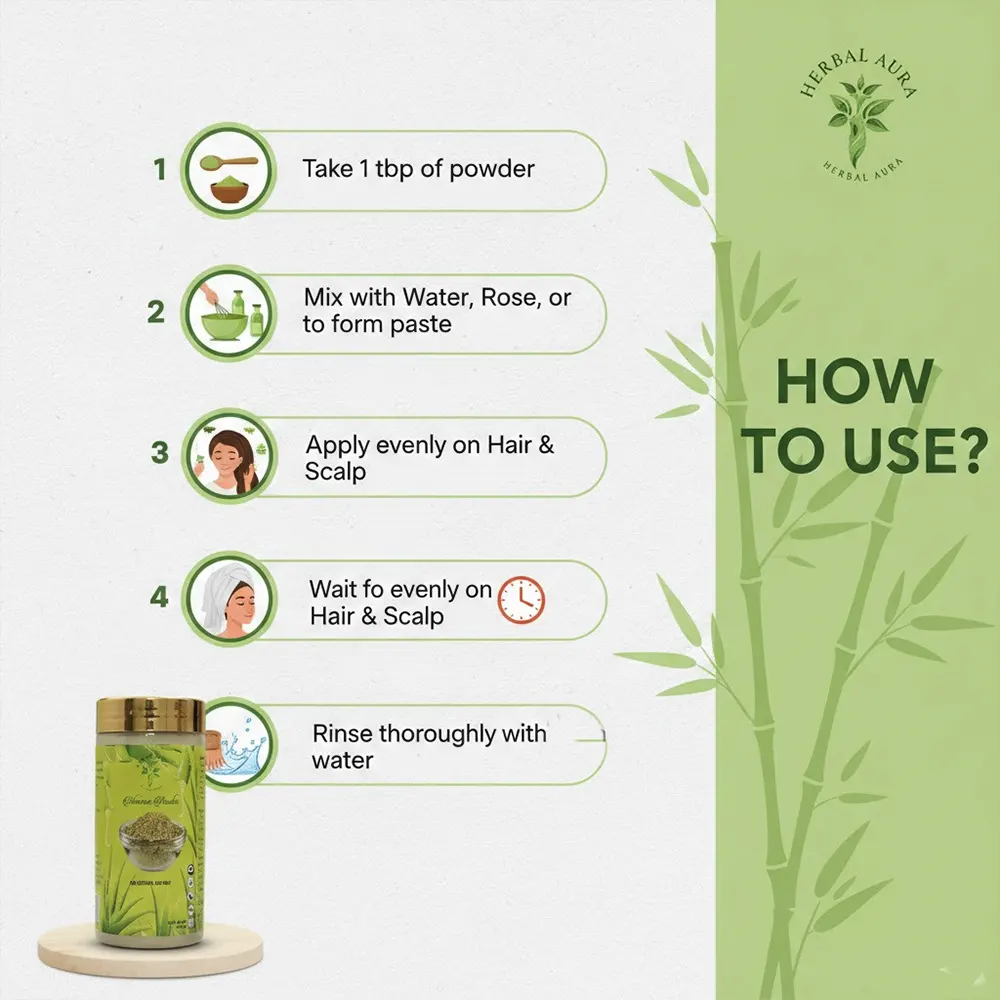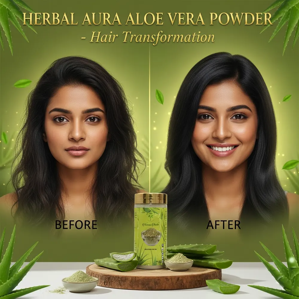 Herbal Aura Aloe Vera Powder is a 100% natural, chemical-free powder made from dried aloe vera leaves. It is designed for external use to provide a cooling and healing effect for both skin and hair, acting as a versatile organic beauty treatment.