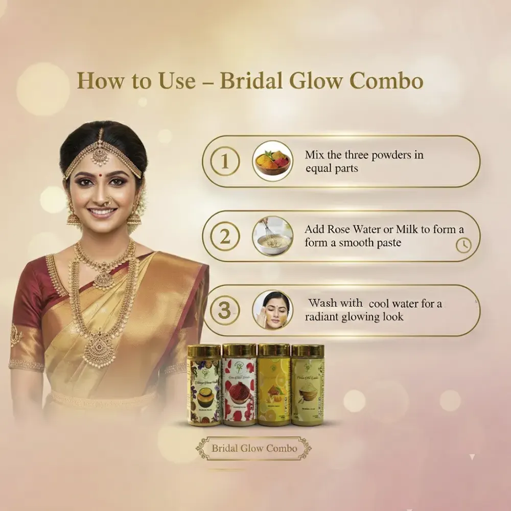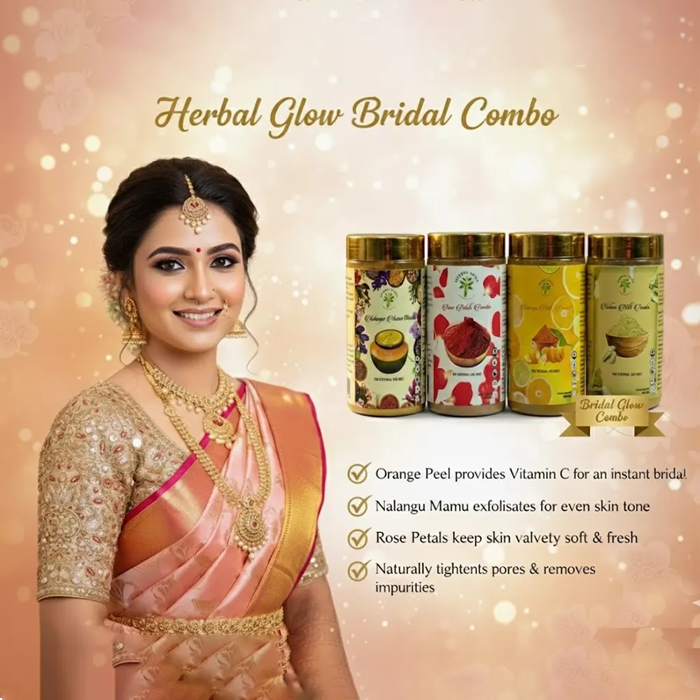 Bridal Glow Combo (260g) (Nalangu Maavu - Rose Petal - Orange Peel - Multani Mitti) Bridal Glow Combo (260g) (Nalangu Maavu - Rose Petal - Orange Peel - Multani Mitti)